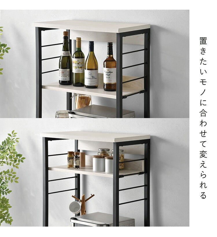 ・上段は引っ掛け棚になっているので、棚の調整が簡単。置きたいものに合わせて高さ調整可能です。