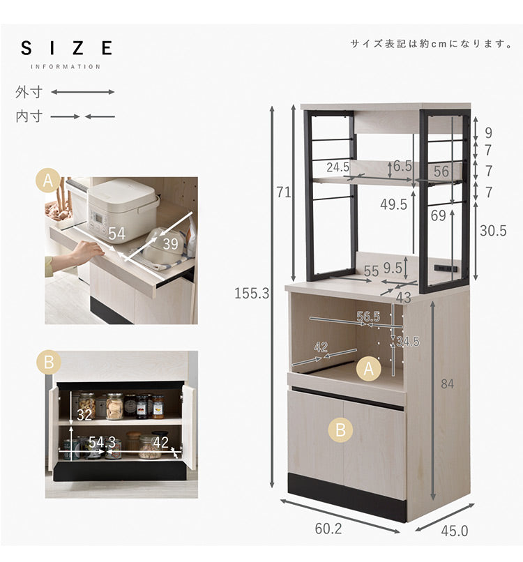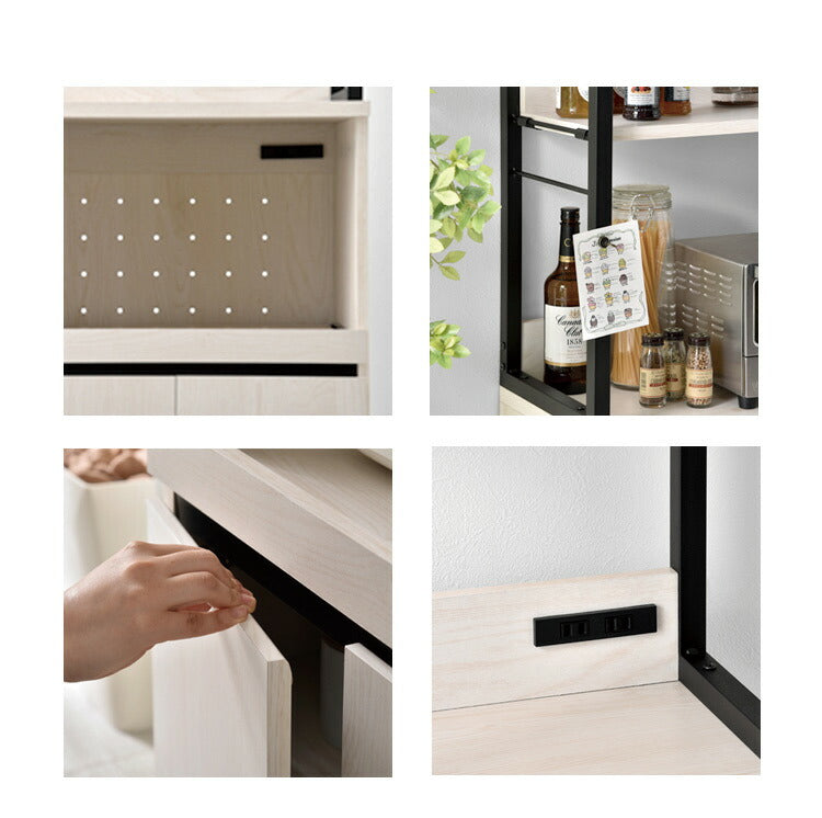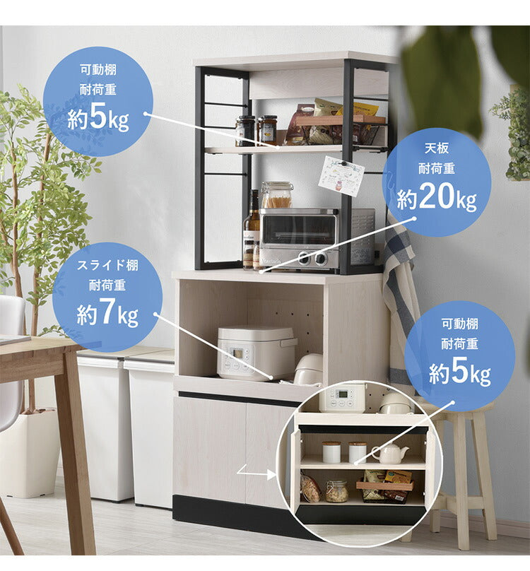 レンジ台 食器棚 約幅60cm オープンタイプ スライド棚付き コンセント2個口 レンジラック スリム キッチンボード 台所収納 キッチン収納 キッチン 電子レンジ台 台所(代引不可)