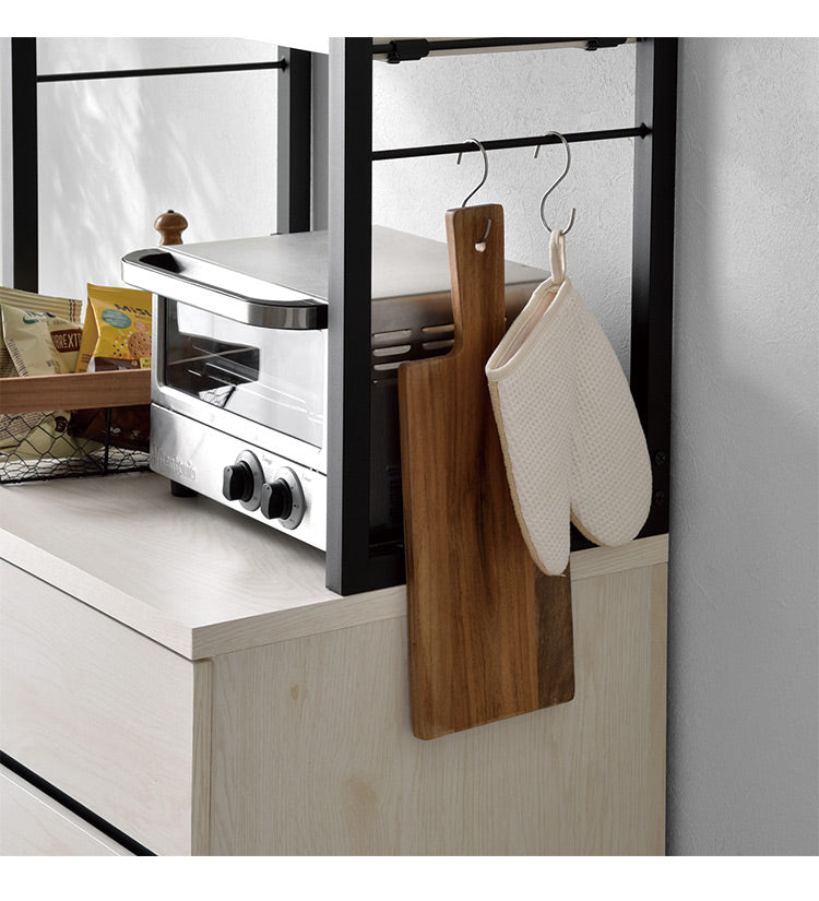 ・上段は引っ掛け棚になっているので、棚の調整が簡単。置きたいものに合わせて高さ調整可能です。