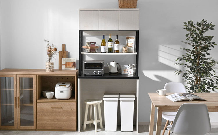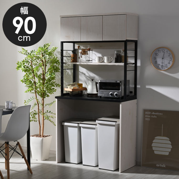 ウッドとスチールのゴミ箱上ラック 幅90cm 食器棚 ごみ箱 ラック 収納 レンジラック カップボード ゴミ箱収納 レンジ台 大型レンジ対応 レンジボード ダストボックス キッチン収納(代引不可)