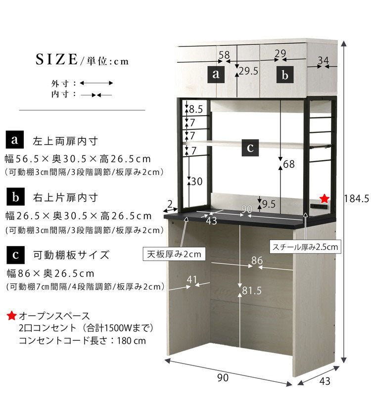 幅90×奥行き45×高さ184cm