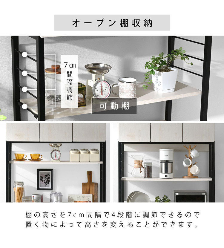 ・オープンスペースの棚は引っ掛け棚となっており、希望の高さに調整可能です。
