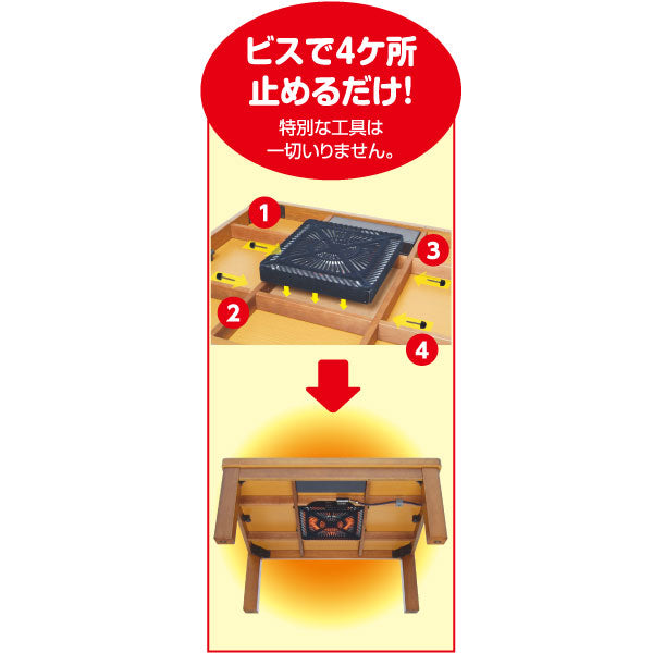 ユアサこたつ推奨機器●特別な工具は一切不要 薄型ヒーター 温調ツマミ無段階可変式