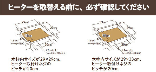 ヒーター取付け木枠内サイズ:29×29cm 29×33cm