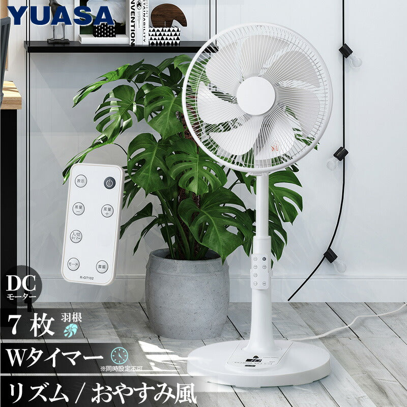 ユアサプライムス 扇風機 DCファン リビング扇 30cm 7枚羽 ホワイト 静音 省エネ DCモーター 12段階風量調節 左右首振り