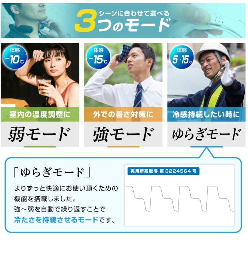 強モード:外気温より-10~-15度 弱モード:外気温より-5~-10度
