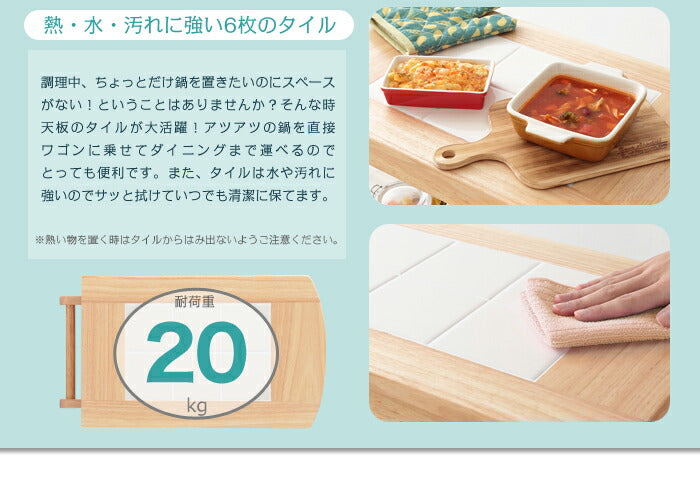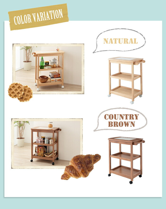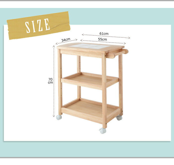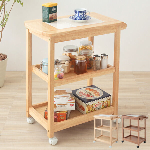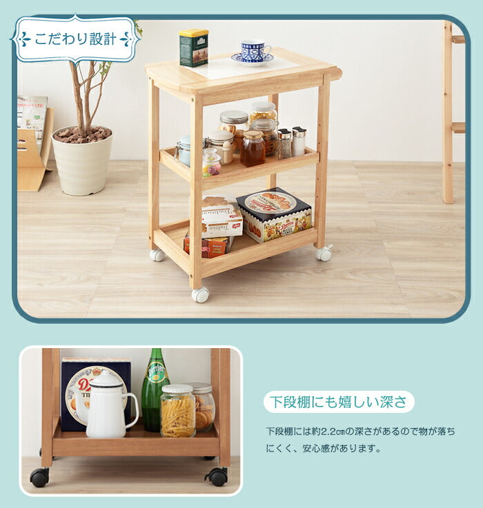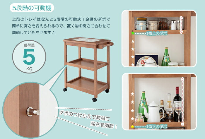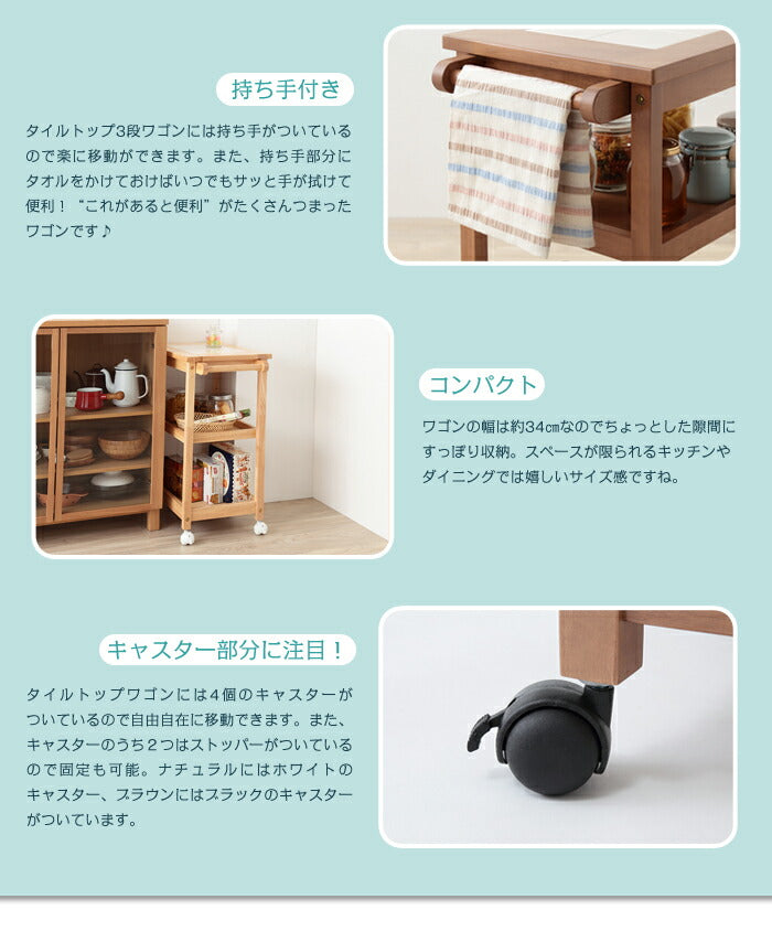 キッチンワゴン タイル 天板 スリム 木製 タイルトップ3段ワゴン 5段階可動棚 キャスター タオルハンガー カントリー モダン 北欧 おしゃれ 新生活 キッチン ダイニング 収納 収納ワゴン キッチンラック