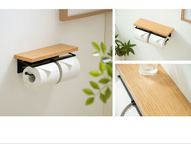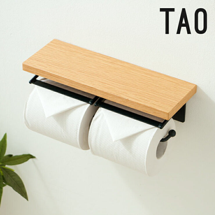 トイレットペーパーホルダー おしゃれ 木製 ツインタイプ ダブル 2連 スチール 木 棚付き ナチュラル シンプル 北欧 トイレ収納 飾り棚 ペーパーホルダー ラック トイレットペーパー トイレ 【TAO】【タオ】