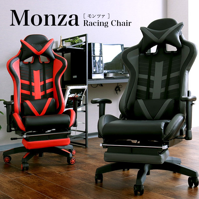 こちらの商品はお客様組立品になります。 レーシングカーを思わせるバケットシート形状でしっかり身体をホールドし、長時間座っていても疲れにくい構造になっています。背もたれはレバー式12段階で最大135度までリクライニングします。ロッキングを解除すれば最大150度までゆりかごのようにロッキングできます。スライド収納できるオットマン付きで疲れた時は足を伸ばしたリラックスできます。アルミ製のスライド式レールを採用しているので出し入れがスムーズです。ヘッドとランバー部分にはクッションがついています。ランバークッションは可動式になっているので、上下で腰の最適な位置に移動させることができます。アームレストは7段階で高さを調節できます。