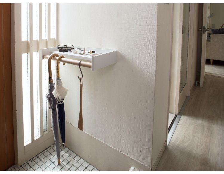 【ご使用の際のご注意】・パイプ、シェルフそれぞれに10kg以上の荷重をかけないでください。 製品や壁面の破損原因になります。 ・パイプには絶対にぶら下がらないでください。製品破損やケガの原因になります。 ・下から強い衝撃を与えないでください。本体がブラケットから外れて、落下する恐れがあります。 ・分解・修理・改造は行わないでください。