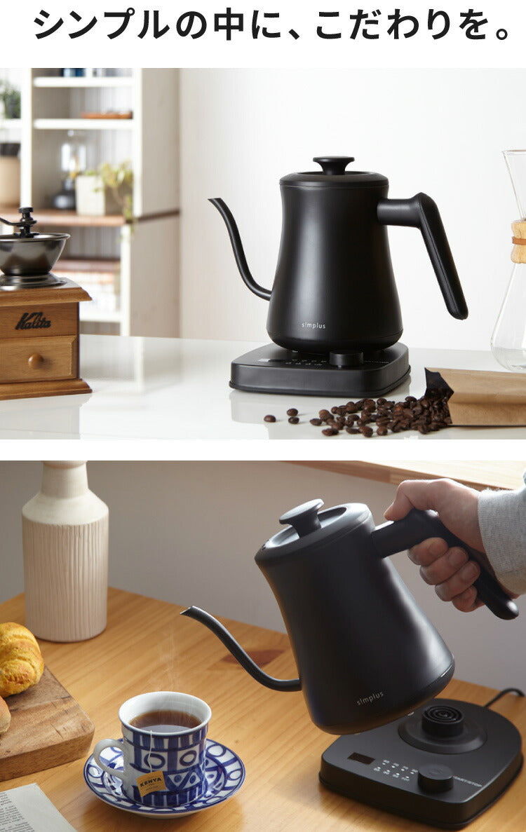 温度調節機能付き ケトル simplus シンプラス SP-KL01 0.6L グースネック ステンレス 電気ケトル ドリップケトル