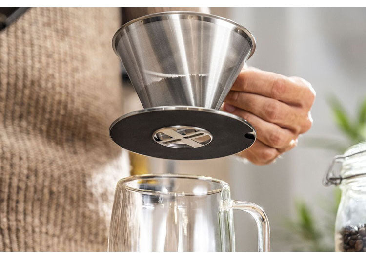 紙フィルター無しで繰り返し使えるステンレスコーヒードリッパー。