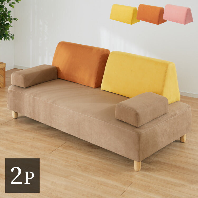 アイランドソファ ソファ 2人掛け 組み換え自由 間仕切り 2P 二人掛け おしゃれ ローソファ ソファーセット 大きい ベロア オットマン イエロー オレンジ ピンク(代引不可)