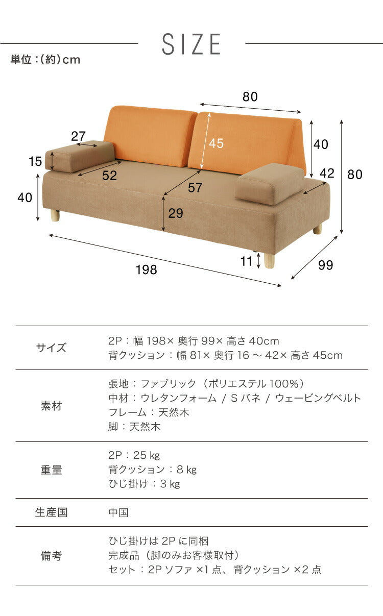 セット:2P×1点、背クッション×2点