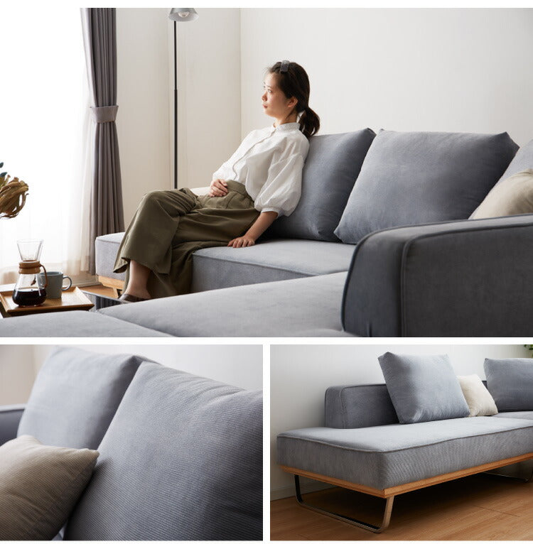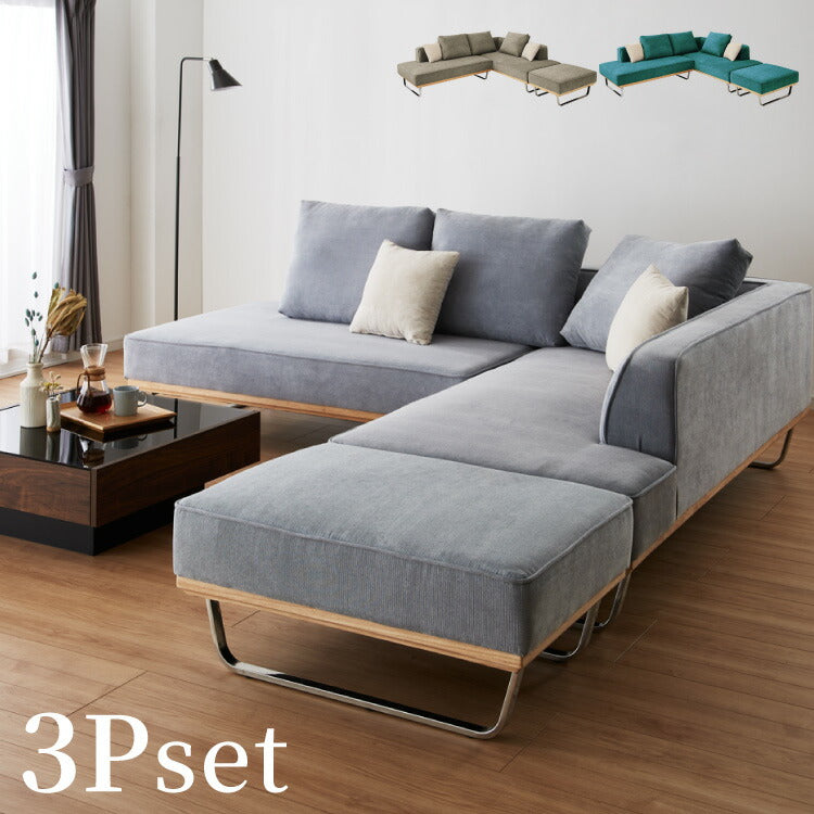 ソファ カウチソファ オットマン付き l字 コーデュロイ コーナーソファ ソファー 3人掛け 4人掛け ファブリック 布 ブルー グリーン L型 スチール ローバック カーキ 三人掛け(代引不可)
