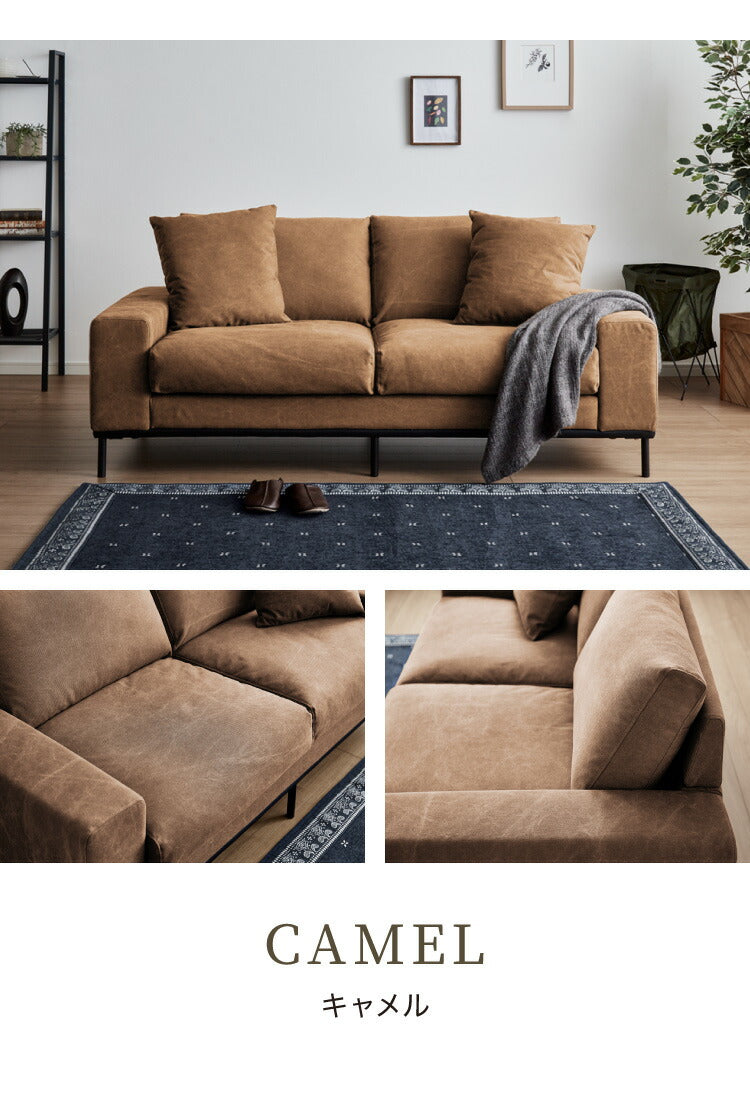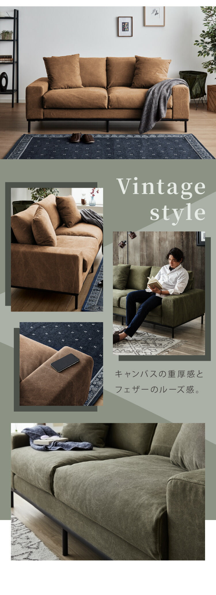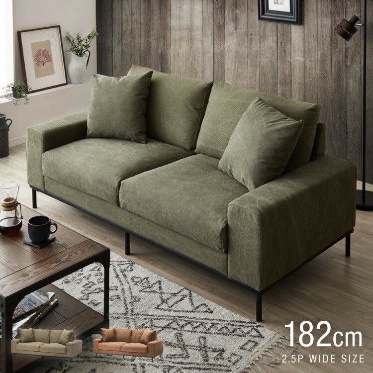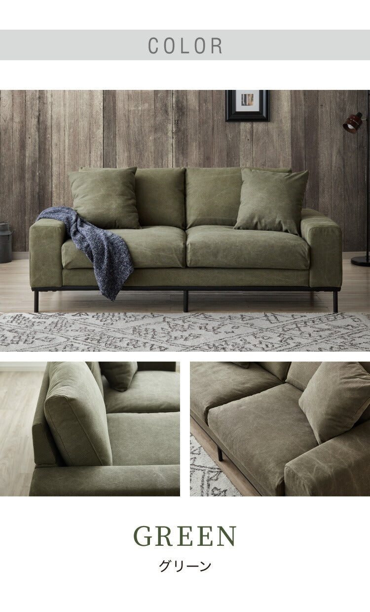 ソファ ソファー キャンバス 帆布 幅182 完成品 開梱設置無料 3人掛け 2人掛け フェザー ポケットコイル 脚付き 北欧 西海岸 カーキ グリーン キャメル インダストリアル(代引不可)