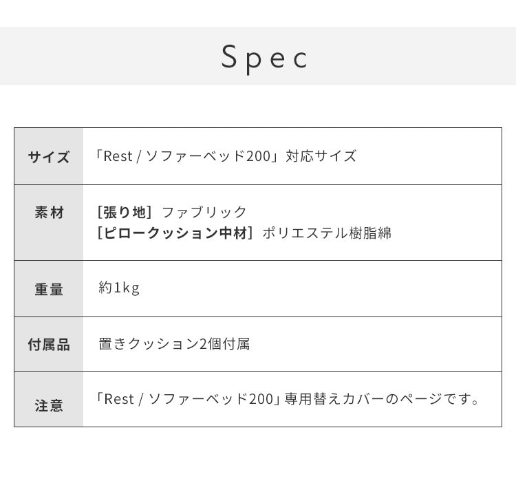 「Rest / ソファーベッド200」専用替えカバーのページです。