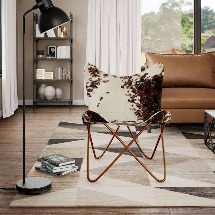 vidaXL バタフライチェア ブラウン&ホワイト 本牛革家具 チェア アームチェア・リクライニングチェア・スリーピングチェア(代引不可)