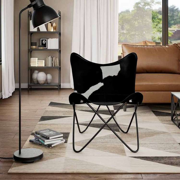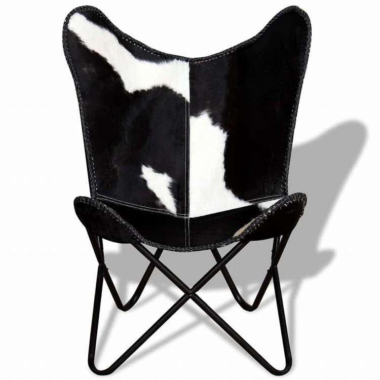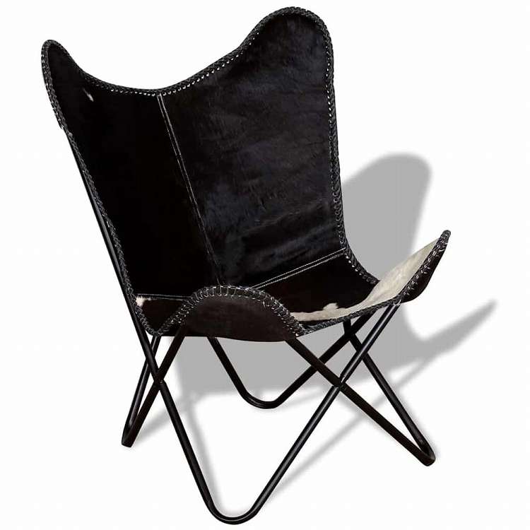 vidaXL バタフライチェア ブラック&ホワイト 本牛革家具 チェア アームチェア・リクライニングチェア・スリーピングチェア(代引不可)
