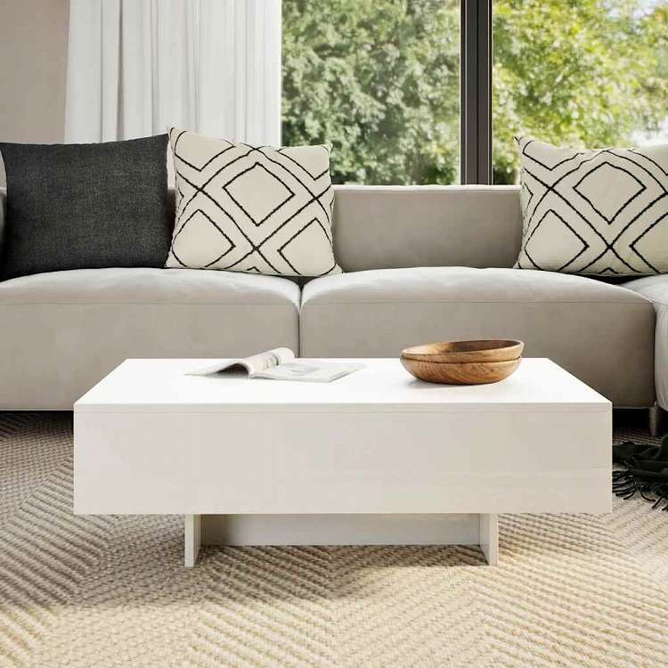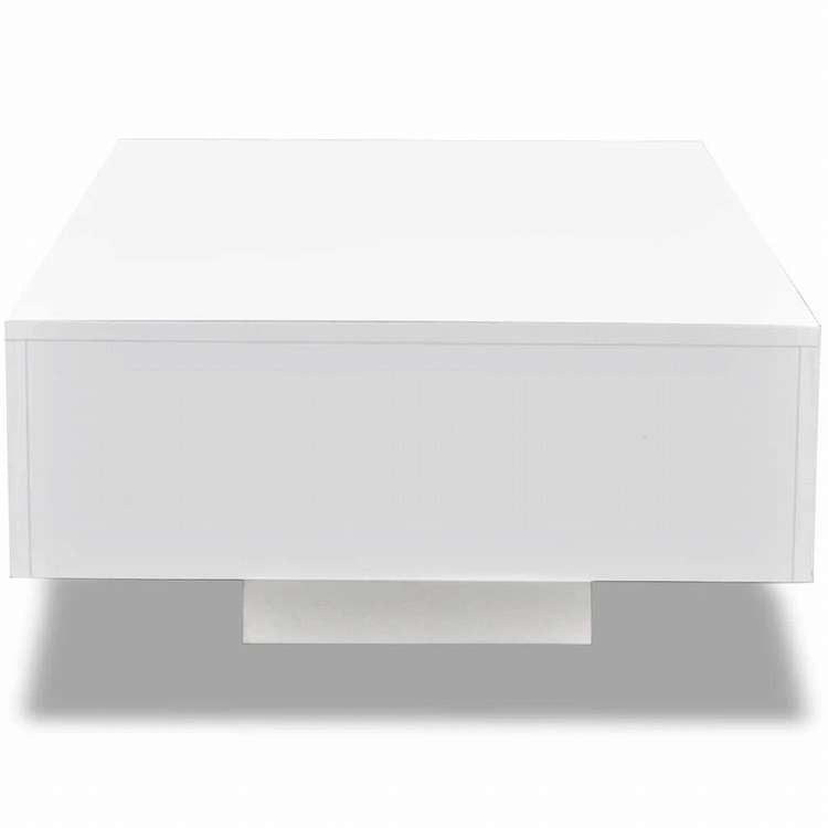 ■この長方形のコーヒーテーブルは、ハイグロスホワイトに仕上げ、こだわりのシンプルデザインが特徴です。モダンテイストでありながらも、用途を問わない意匠だから、コーヒーテーブルやサイドテーブルとして、使い回せます。 高光沢仕上げされた高品質のMDFでできているため、テーブルは湿らせた布で拭くだけと、お手入れも簡単楽々です。