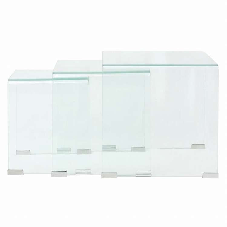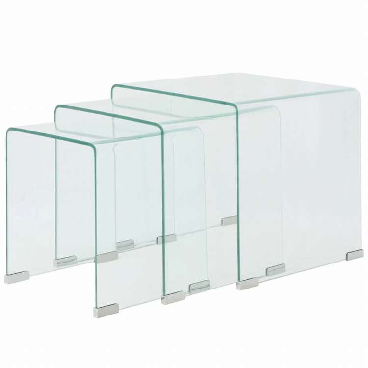 vidaXL ネストテーブル3点セット 強化ガラス製 クリア家具 テーブル アクセントテーブル コーヒーテーブル(代引不可)