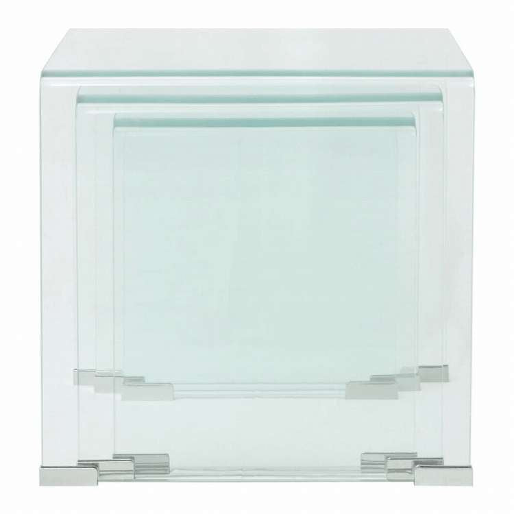 ■スペースに限りあるアパートなど、狭小なお住まいで大活躍する、スリーピースのネストテーブルセット。コンテンポラリーなデザイン性が輝き、リビングやベッドルームにシックなワンポイントをプラス。 マルチな用途のネストテーブル。リビングでは、飲み物など、ちょっと手元にあると嬉しい、必須アイテムを置いておくのに役立ちます。1つテーブルをベッドルームに配置すると、ユニークなナイトスタンドに。ネストテーブルは、強化ガラス製です。入れ子状のテーブルだから、ライフスタイルに合わせて使い回せ、空間の有効活用にも繋がります。小さなテーブルを大きなテーブルの下に隠せる、省スペース設計が特徴です。 ネストテーブル3点をセットでお届けします。