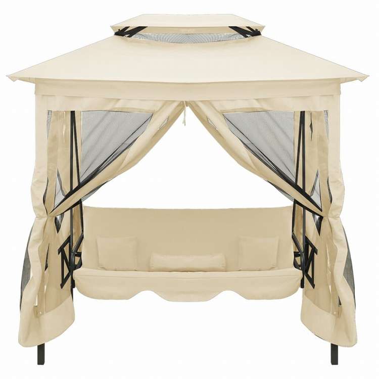 vidaXL ガゼボスイングベンチ コンバーチブル クリームホワイトホーム&ガーデン 芝&ガーデン アウトドアリビング ポーチブランコ椅子用品ブランコ椅子(代引不可)