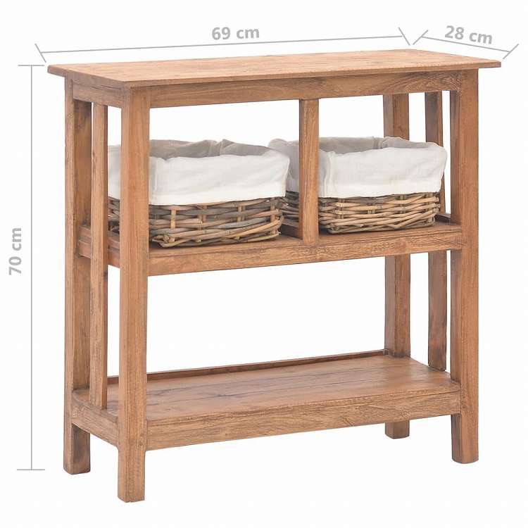 ■住まいのインテリアをちょっぴりラスティックに演出する、オススメの木製コンソールテーブル。テーブルには取り外し可能なラタン製バスケット2点、収納棚1点が付いており、十分な収納スペースがあります。取り外し可能なバスケットは実用的だけではなく、キャビネットをおしゃれに飾ります。 マホガニー無垢材で作られたこのコンソールテーブルは、非常に耐久性があり頑丈です。マホガニーは、その美しさ、耐久性、色彩が際立つ熱帯の広葉樹です。この商品には、ヴィンテージ感、温かみ、本物のような外観を与えるために、特別な職人技が施されています。 重要事項:自然素材であるため、色は商品毎に異なり、ユニーク。ランダム発送。