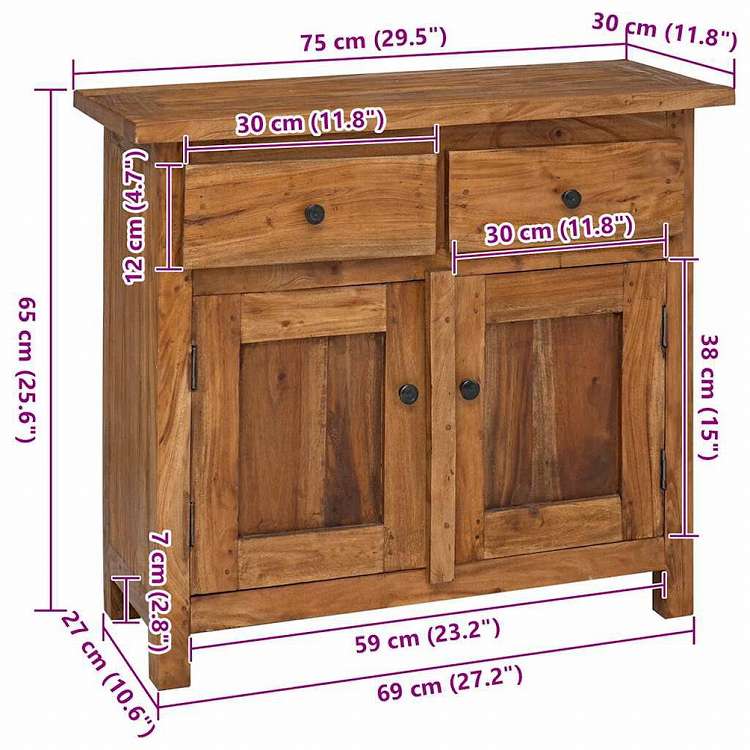 vidaXL サイドボード マホガニー無垢材 75x30x65cm家具 キャビネット&収納 サイドボード(代引不可)