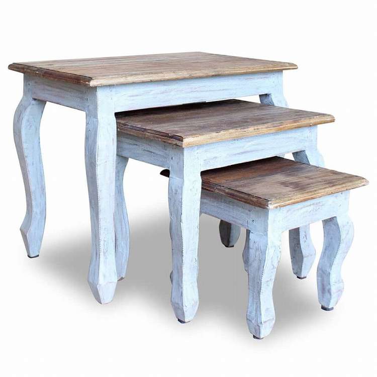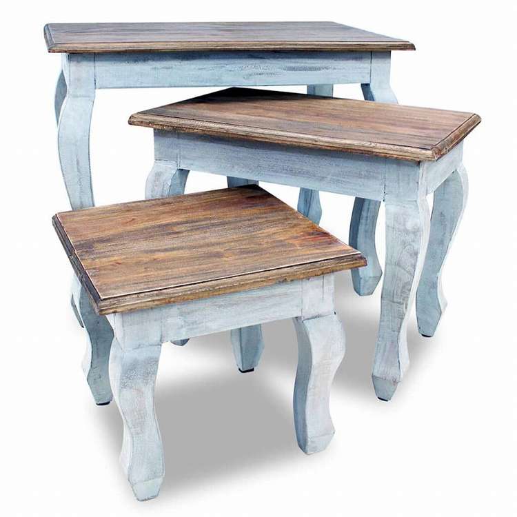 vidaXL ネストテーブル 3点セット マホガニー無垢材家具 テーブル アクセントテーブル エンドテーブル(代引不可)