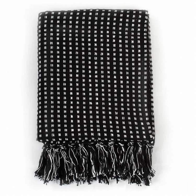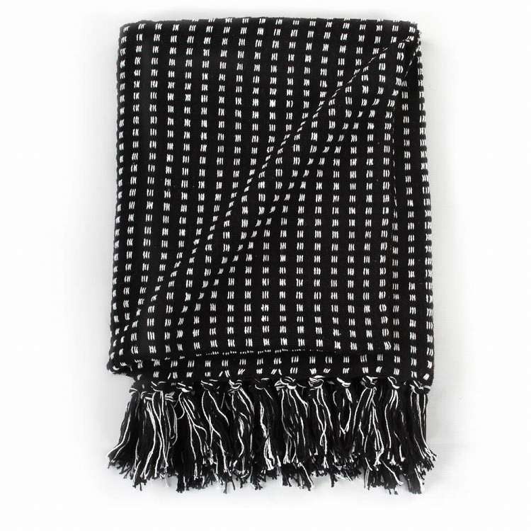 vidaXL スローケット コットン製 スクエア 125x150cm ブラックホーム&ガーデン リネン&ベッド ベッド ブランケット(代引不可)