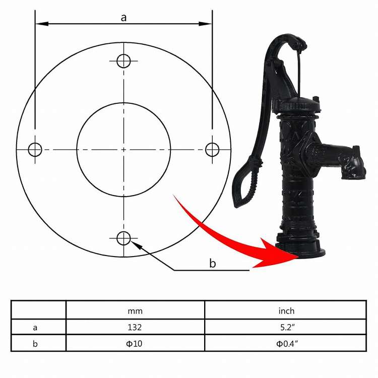 ■このウォーターポンプは完全に手動で操作され、非常に使いやすいです。ハンドルを上下に動かすと、水が地面から汲み上げられ、蛇口から流出します。このハンドポンプは簡単に設置できます。鋳鉄構造で、頑丈で耐久性に優れています。
