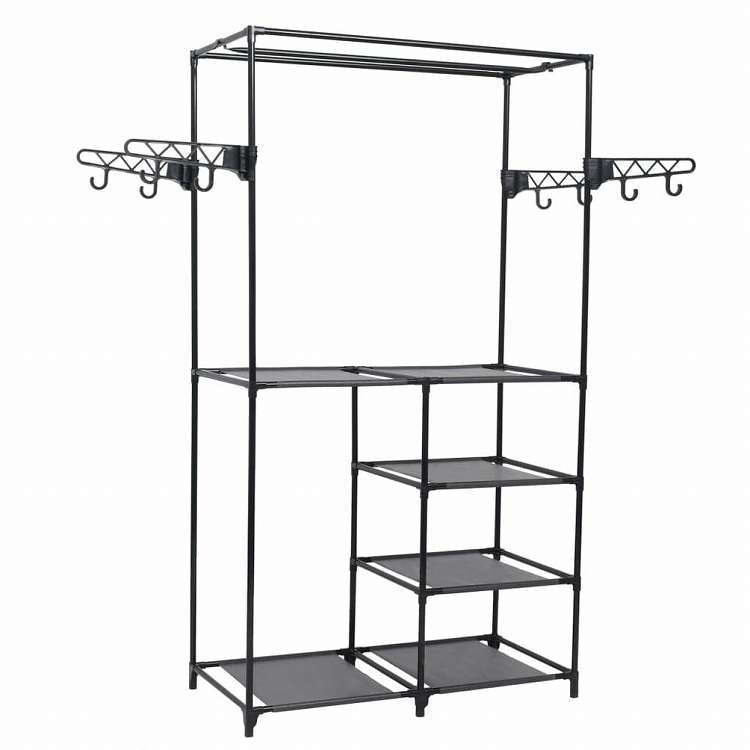 ■ミニマルデザインの洋服ラックは、ベッドルームやバスルームに1つは欲しい収納家具です。 筒状の粉体塗装スチールフレームを備えており、軽量ながら頑丈で、洋服ラックは動きやすく、耐久性抜群です。広々とした大きな収納棚4点は、環境に優しい不織布でできており、バッグ、靴、小物などを整理整頓できる設計です。また、コートやジャケットなど、長い衣類を収納できるように、フック付きのサイドアーム4点があり、お部屋に追加の収納スペースを与えます。 組み立ては簡単です。