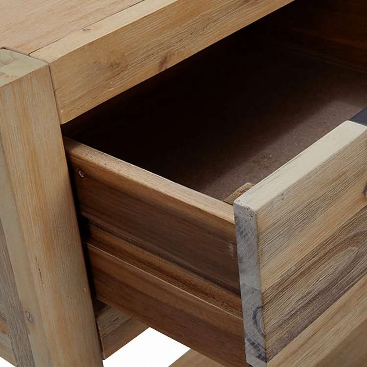 ■このコンソールテーブルは、インテリアに素朴な魅力を添えます。 このコンソールテーブルは、ブラシ仕上げのアカシア無垢材と、MDF素材で出来ており、非常に頑丈で安定性が高いのが特徴。コンソールテーブルのテーブルトップ面は丈夫なので、果物かごや花瓶といった装飾品を置くことができます。テーブルには、棚と引き出しが2つ備わっているため、手の届く範囲に置いておきたい小さなアイテムを何でも収納しておくことができます。この商品は組み立てが必要です。