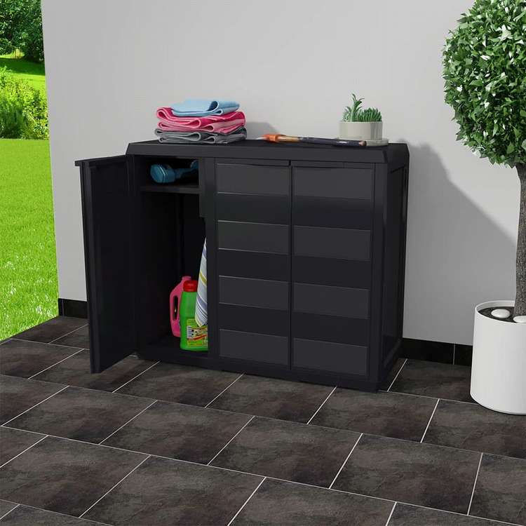 vidaXL ガーデン ストレージキャビネット 2段棚 黒色家具 キャビネット&収納 収納キャビネット・ロッカー(代引不可)