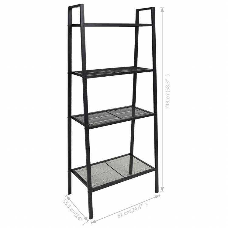 ■バスルーム、リビングルーム、オフィスに加えるには理想的な本棚/シェルフユニット。陳列棚や収納棚としても活用できます。 限られたスペースにぴったりのディスプレイラック。コンパクトなはしごデザインとメッシュ棚が特徴です。棚4段には、本や雑誌を収納したり、フォトフレームなど、装飾品を展示したりするスペースたっぷり。シェルフユニットは金属製で、丈夫な作りなのでお手入れも組み立ても簡単です。