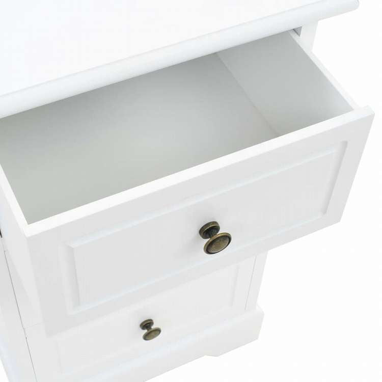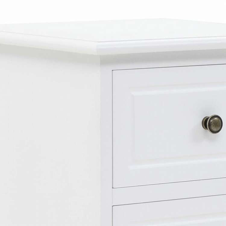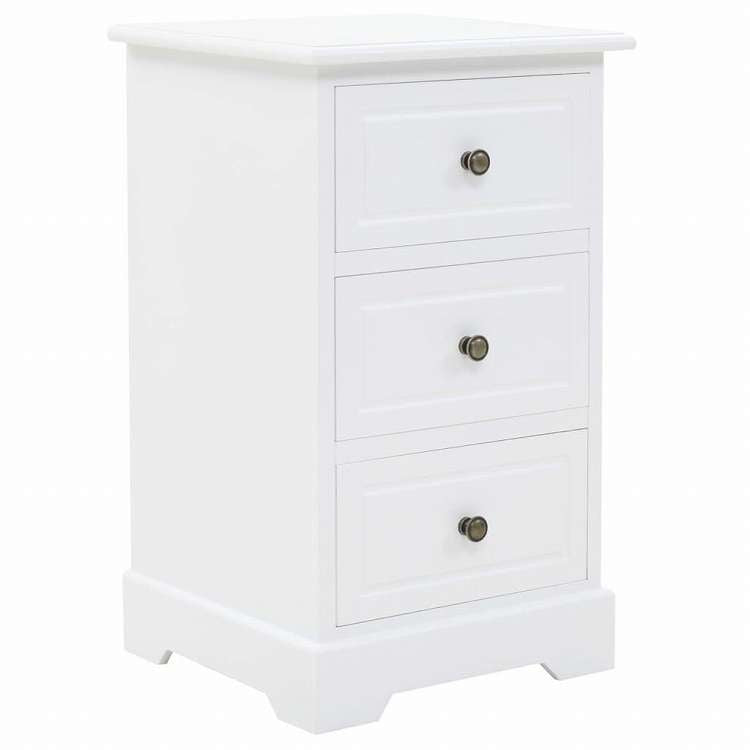 ■シックなデザイン、清潔感たっぷりのホワイト仕上げが特徴のベッドサイドキャビネット。ベッドルームにぴったりで、サイドキャビネットとしても使い回せます。 ナイトテーブルはMDFでできており、引き出しには金属製のハンドルが付いています。 引き出し3点を備えており、小物を手の届く範囲に収納するスペースがあります。目覚まし時計、飲み物、フォトフレームなど、装飾品をキャビネットのトップ面に配置できます。