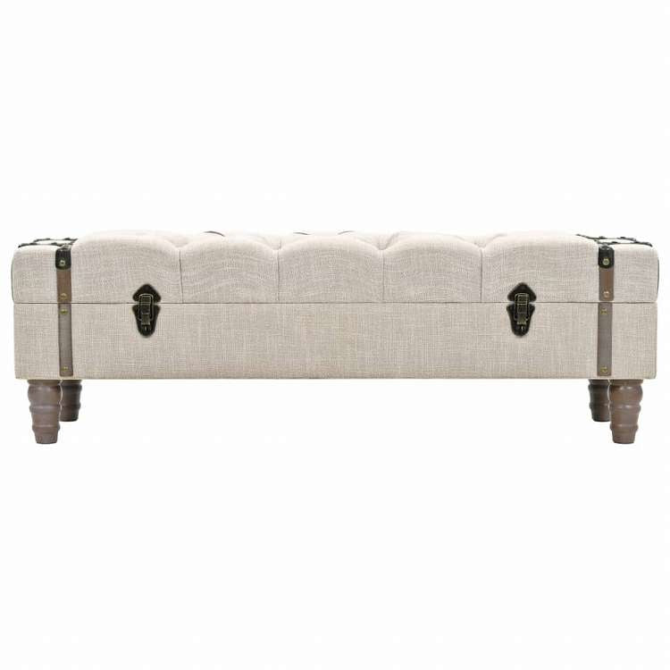 ■インテリアにヴィンテージ感を加える、収納ベンチ。 収納ボックスは、無垢のモミ材の造りです。分厚いパッド入りのシートは、モダンな生地で布張りされており、頑丈なスチール脚で支えられています。収納ボックスは、お好みのアイテムをまとめて収納する、容量たっぷりです。アイテムを隠して生活感を抑え、手に届く範囲にキープします。耐久性のあるハンドルを使用すると、トランク型の収納ベンチは、簡単に移動でき、お部屋の模様替えがお手軽に。 組み立ては簡単です。