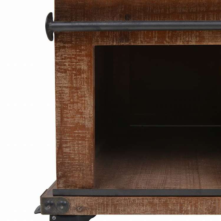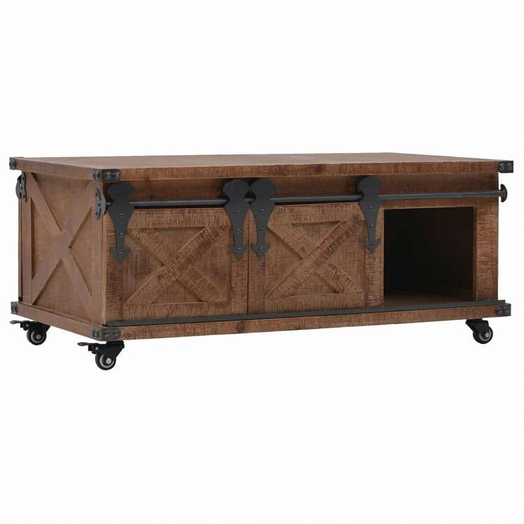 ■クラシックデザインの木製コーヒーテーブルは、インテリアにお洒落なワンポイントをプラスします。サイドテーブル、カウチテーブル、リビングテーブル等としても使用できます。 安定性と耐久性に優れたサイドテーブル。ヴィンテージの魅力あふれる、素朴なデザインが特徴です。モミ製の頑丈なトップは、フルーツバスケット、花瓶など、装飾品を飾ったり、いろんなアイテムをスッキリ整理し、収納できるスペースがあります。ユニークなスライドレール付きだから、ドアは開け閉め簡単で、ヴィンテージ・インダストリアルなアクセントをテーブルに加えています。テーブルは柔軟性に優れたキャスター4点付きで、簡単に移動できます。 組み立ては簡単です。