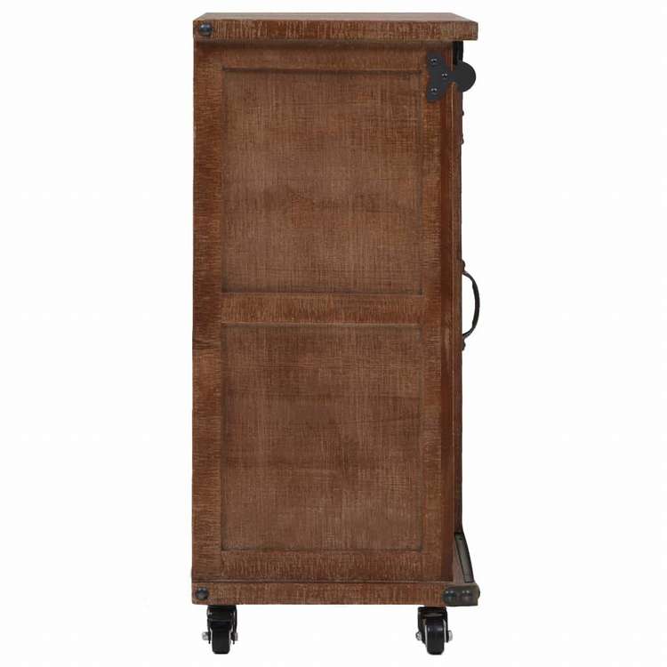 ■このクラシックスタイルの収納キャビネットは、お家をお洒落に彩ります。ローボード、サイドボードとしても使用可能です。 安定性と耐久性に優れたキャビネットは、無垢のモミ材でできています。ヴィンテージの魅力あふれる、素朴なデザインが特徴です。いろんなアイテムをスッキリ整理し、収納できるスペースがあります。ユニークなスライドレール付きだから、ドアは開け閉め簡単で、ヴィンテージ・インダストリアルなアクセントをキャビネットに加えています。木製キャビネットは柔軟性に優れたキャスター4点付きで、簡単に移動できます。 組み立て簡単。
