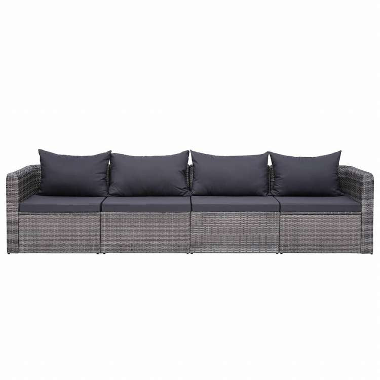 vidaXL ガーデンソファ4点セット クッション付き 灰色 ポリラタン製家具 アウトドア家具 屋外椅子 屋外ソファ(代引不可)