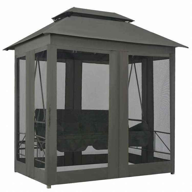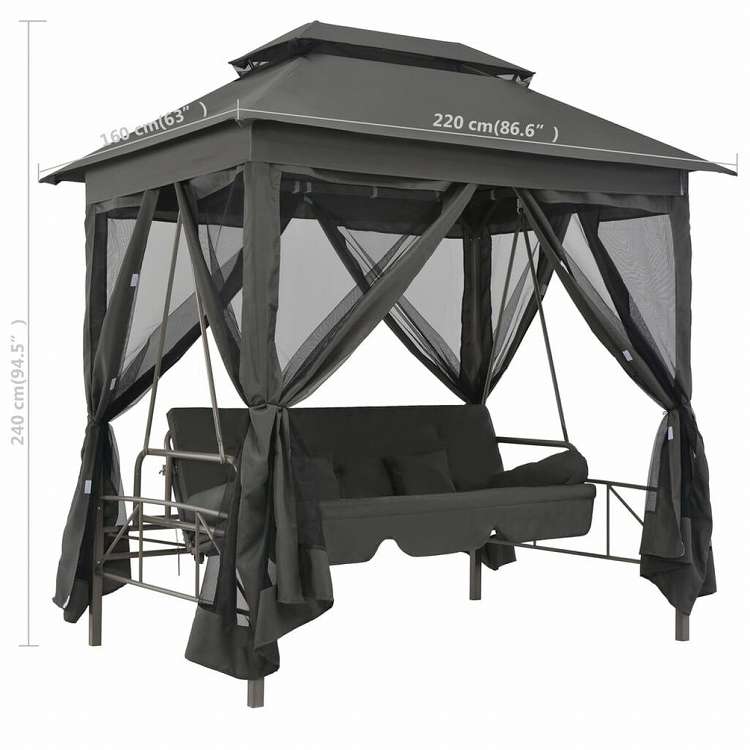 vidaXL 屋外用 コンバーチブルスイングベンチ キャノピー付き アントラシート 220x160x240cm スチール製ホーム&ガーデン 芝&ガーデン アウトドアリビング ポーチブランコ椅子用品ブランコ椅子(代引不可)