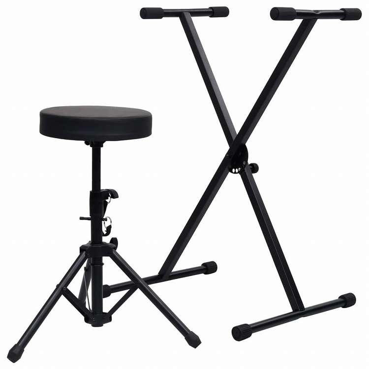 vidaXL キーボードスタンド&スツールセット ブラックアート&エンターテイメント 趣味&クリエイティブアーツ 楽器&オーケストラアクセアリ 音楽用ベンチ・スツール(代引不可)
