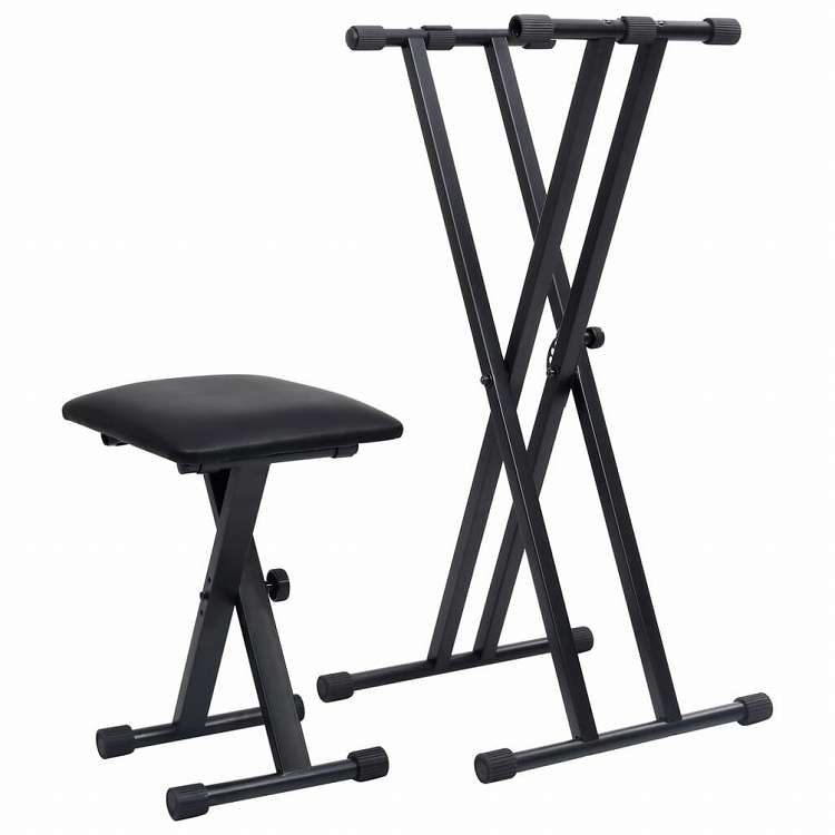 vidaXL キーボードスタンド&スツールセット ダブルブレース ブラックアート&エンターテイメント 趣味&クリエイティブアーツ 楽器&オーケストラアクセアリ 音楽用ベンチ・スツール(代引不可)