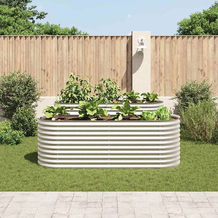 vidaXL レイズドガーデンプランター 240x80x81cm 亜鉛メッキ鋼製 シルバーホーム&ガーデン 芝&ガーデン ガーデニング 鉢植え・プランター(代引不可)