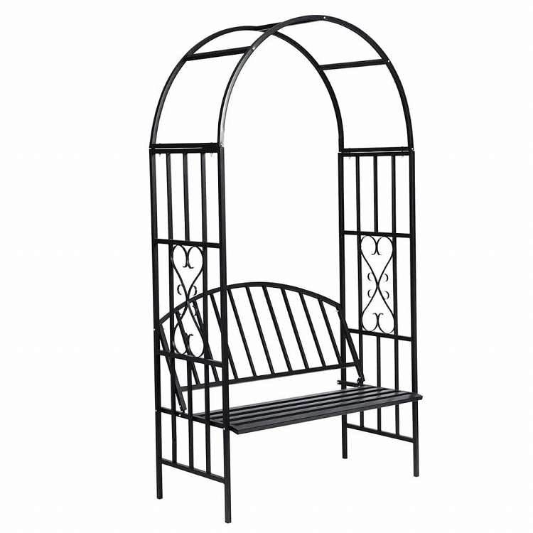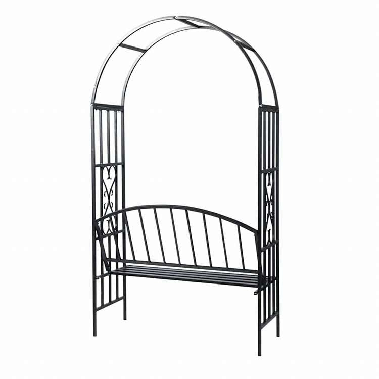 ■このベンチ付きのガーデンローズアーチは、どんなお庭、パティオやテラスで人目をグッと引くものに。アーチ全体に美しいデザインが丁寧に施されています。