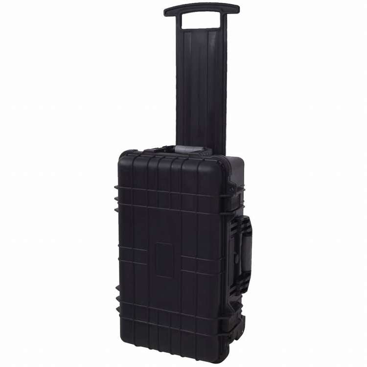 ■旅行中にケースの持ち運びに役立つ2つのキャスター、調整可能な伸縮ハンドルが整備されているツールケース。魅力的な黒の仕上げは、年数を問わずに長年ご使用いただけます。2つの南京錠でロックでき、最大限のセキュリティを確保します。(ロックは含まれていません)