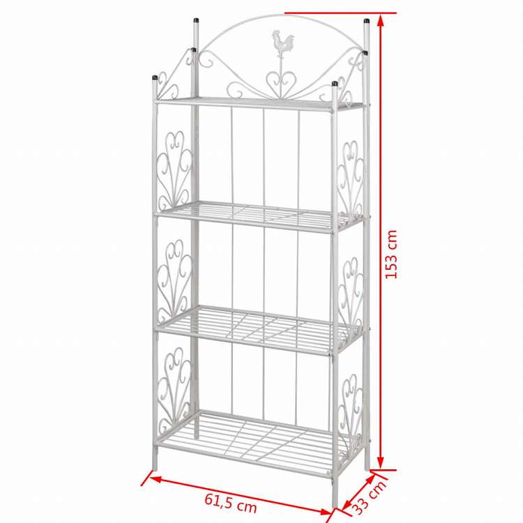 ■このホワイトカラーのプランターラックは、花模様のディテールが施されており、植物をお洒落にディスプレイするのに理想的です。お庭、パティオ、テラスで人目をグッと引くでしょう。 この4段型の植物スタンドの高さは153cmです。高品質のスチールを採用しているから、とても頑丈な園芸ラックに仕上がっています。粉体塗装を施し、サビに強い、長持ちするプランツラックを実現しました。 サイズ:61.5 x 33 x 153 cm (幅 x 奥行き x 高さ)