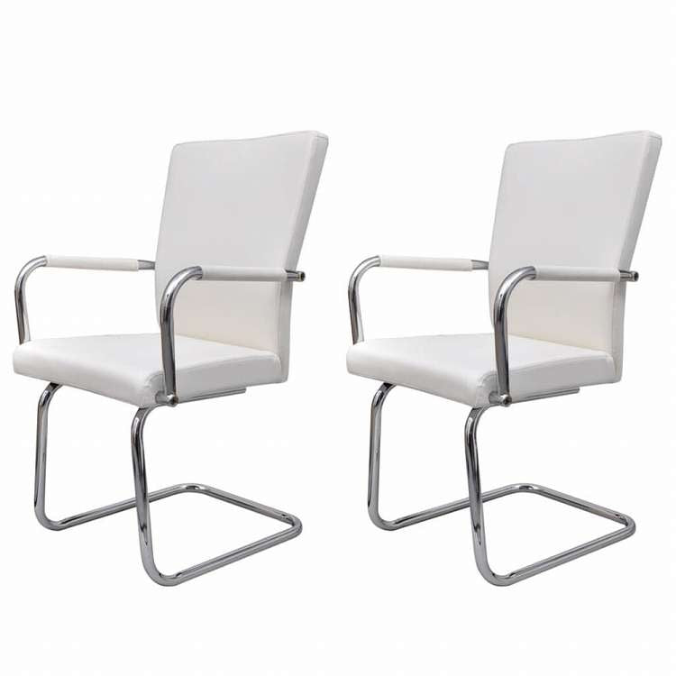 vidaXL カンチレバーダイニングチェア 2点 ホワイト 合成皮革製家具 チェア キッチン・ダイニングルームチェア(代引不可)