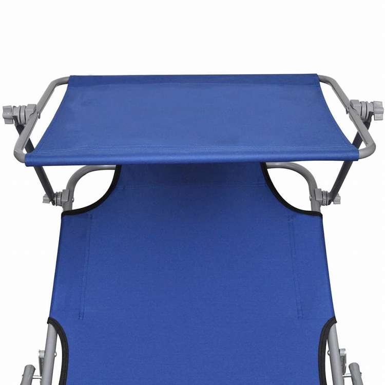vidaXL 折りたたみサンラウンジャー キャノピー付き スチール&布製 ブルー家具 アウトドア家具 屋外椅子 サンラウンジャー(代引不可)